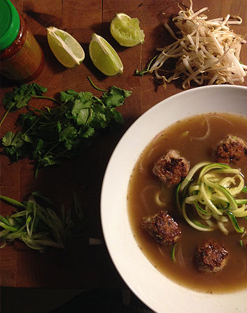 Zucchini Noodle Pho with Pork and Ginger Meatballs